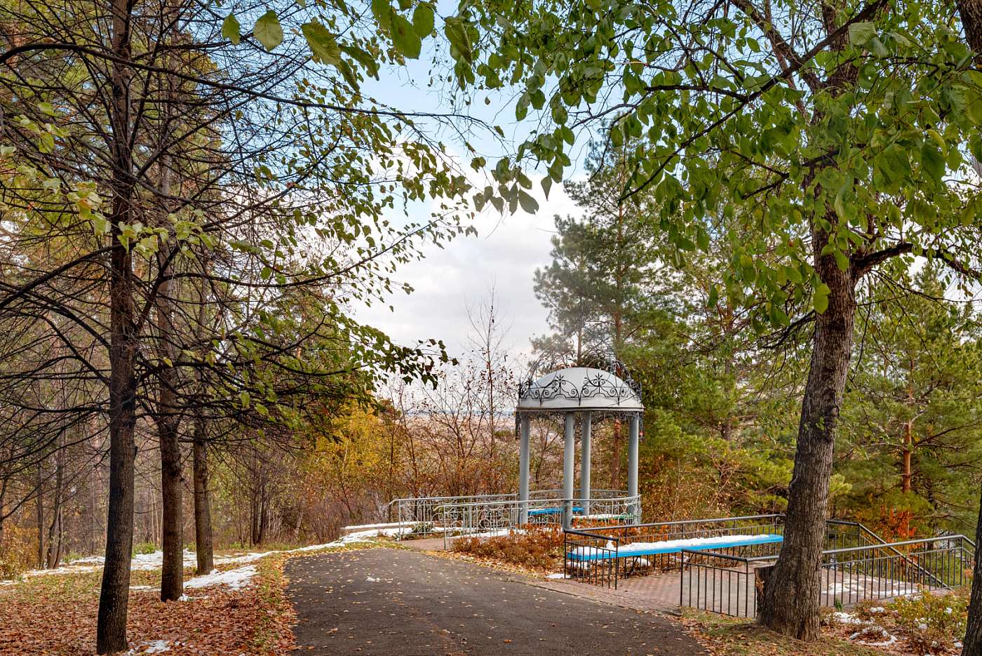 Санаторий расположен в живописной лесопарковой зоне в 19 гектаров, на берегу реки Оби. Где расположено искусственное озеро с пляжем, фонтаном и водопадом.